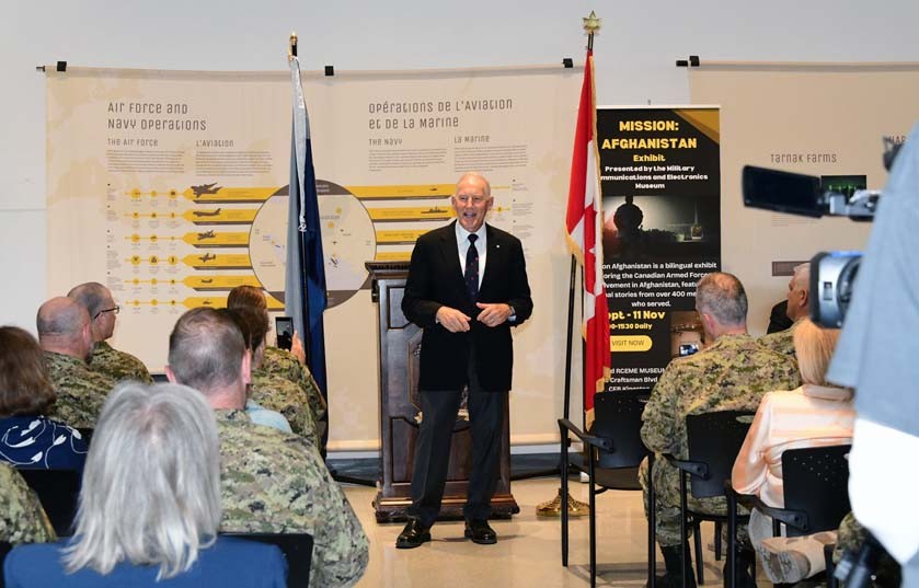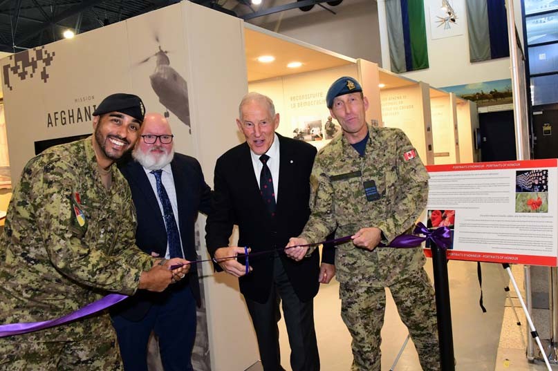 Left to Right / LCol Amir El-Masry, Mr. Sean Hunter, General (Ret’d) Walter Natynczyk, Maj Scott Oikle opening the Mission: Afghanistan exhibit at the Military Communications and Electronics Museum September 9, 2025.