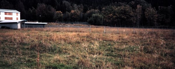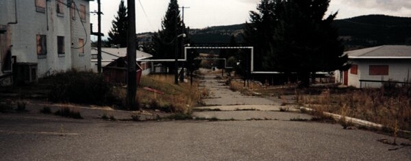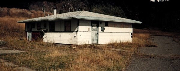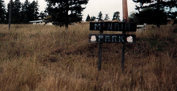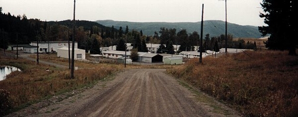 Had you taken the left hand fork (gravel road) you would have reached the remains of a trailer (mobile home) park about 0.5 km down the road. There was a sign with the words "McNair Park" by the road. If you were to drive up into this area, you would find a single building - which was a laundromat. The trailer pads are a reminder of how small some of these mobile homes must have been some 20 years ago.