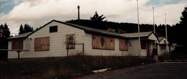 All of the windows on the buildings were covered with plywood and the doors were locked and chained. There were signs everywhere telling the "unwelcomed visitor" that the buildings were all empty - and suggesting it was not worth while to break in and/or vandalize.