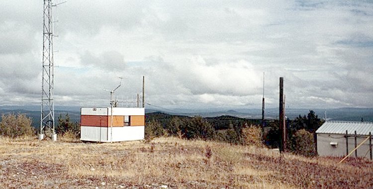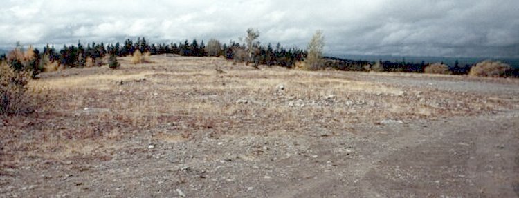 If you wanted to get to the area where the old radar station once stood, you must return to the area where the base camp once stood and drive by the trailers. You would soon find yourself on a gravel road and 9.8 km later, you arrive at the summit. It is not a difficult drive, nor is it as steep as the drive in Holberg or Kamloops. It is suggested that you keep an eye on your mileage odometer. At 7.7 km from the start of the gravel road (2.1 km from the top) you will notice a somewhat narrow road leading off to the right. If you stop and investigate, you will see that this road was once asphalt. I drove in about 3 or 4 km's, and there is nothing there. The shrubs and trees are slowly closing in on this area - and it may well be impassable in another 3 or 4 years. I subsequently heard that the initial military base design had a split layout for their transmitter and receiver sites. It is safe to assume that a transmitter site or a receiver site could have been located in this area.