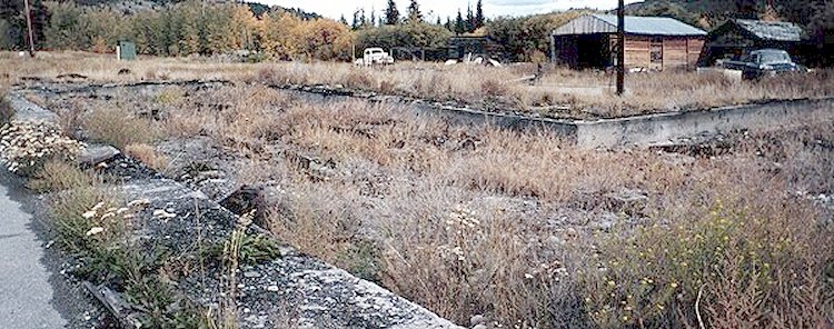 Very little remains. The were a few buildings which are probably currently used by BC Telephone. An additional small wooden building remains a mystery. If you allow your mind to roam a little, you can envision what the area may have looked like in the 1950's or 60's. While walking through this area, I came upon many small pieces of cement that had rebar sticking through... the apparent remnants of foundations to buildings.