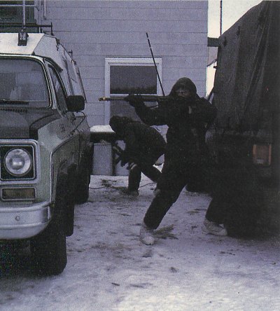 Cpl. Andre Brule, another of the Airborne MPs, enjoyed the chance to be an attacker. Up to then he had always been a defender. He too was impressed with the station' defences. He also learned the value of proper co-ordination. He stole a snowmobile and drove unscathed through the BDF defences right up to the door of the operations centre. There, unfortunately, he was shot by two of his fellow attackers from another section, just as he was about to blow in the vital door. A short sharp conversation between the three teammates established the need for better co-ordination.