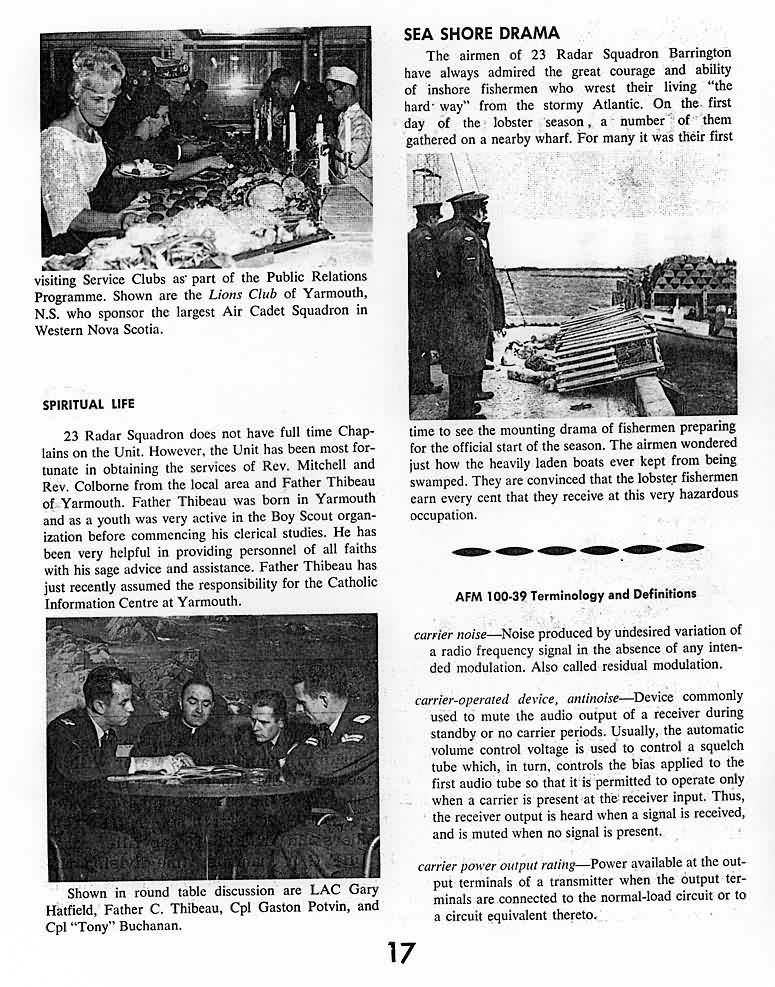 The Air Defense Command team of North American Air Defense Command is comprised of United States and Canadian airmen. This integrated team has worked together for many years and the smooth, efficient manner in which they carry out their duties is a fine example to the whole world. Before leaving for Hill Air Force Base, Utah, these United States airmen were feted by the Sergeants Mess, 23 Radar Squadron.