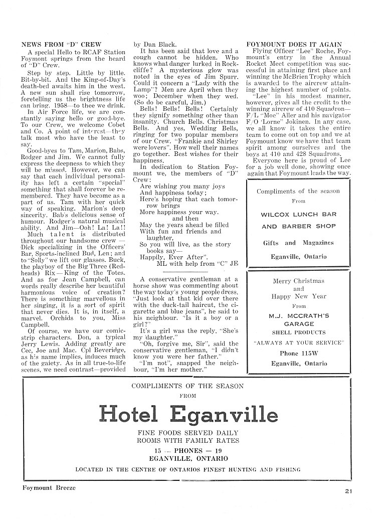 Page 21 of "The Breeze". News from "D" Crew - November-December 1957.