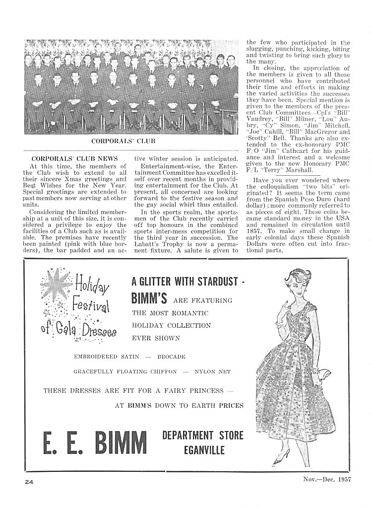 Page 24 of "The Breeze". Corporal's Club News - November-December 1957.