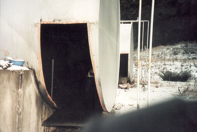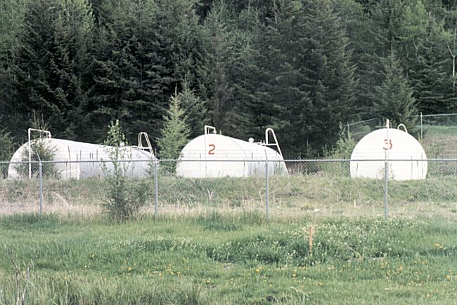 Fuel tanks, road to Operations site, and trailer park in background - May 1999.