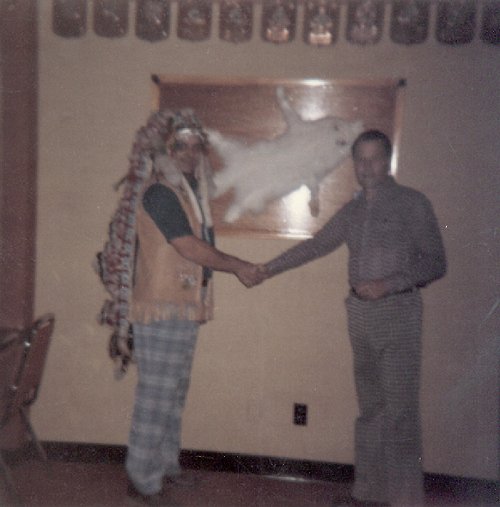 Special Polar Bear presentation in the Sgts. & WO's Mess. (L-R) John Carr and Bill Sleaver - August 1974.