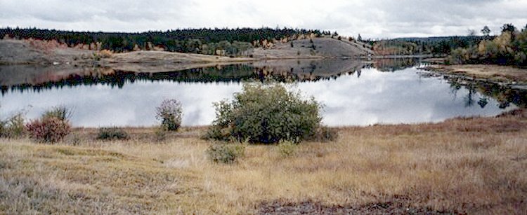 Walking to the other side of the road, I reached an area which was water covered. This was not Puntzi Lake. It may, at one time or other, have been a water reservoir for the military.