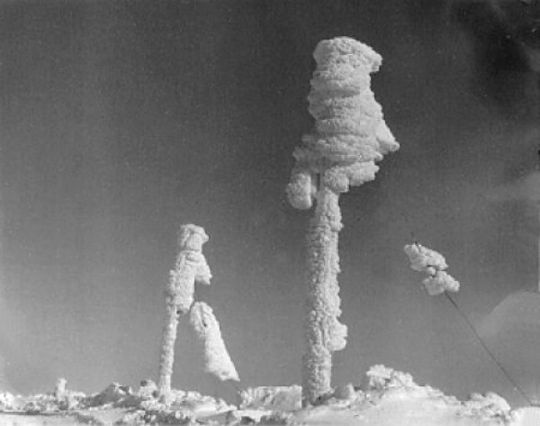 - Troposcatter communications antennas damaged by the ice storm - October 1957.