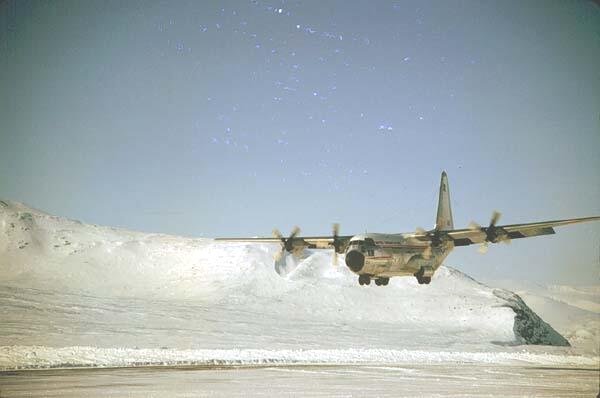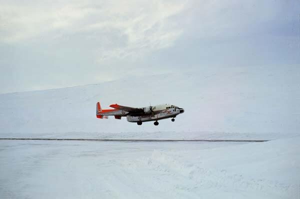 RCAF C-130 Hercules transport aircraft landing - Canadian military exercise - February 1964.