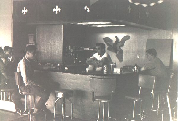 Airmens Mess - Frank Forbes behind the bar. L-R Art Venables, Ray Tessier, Bill Boskwick, unknown - May 1965.
