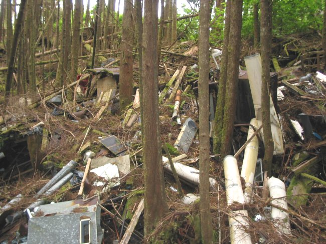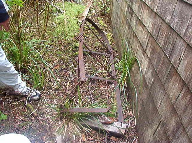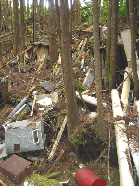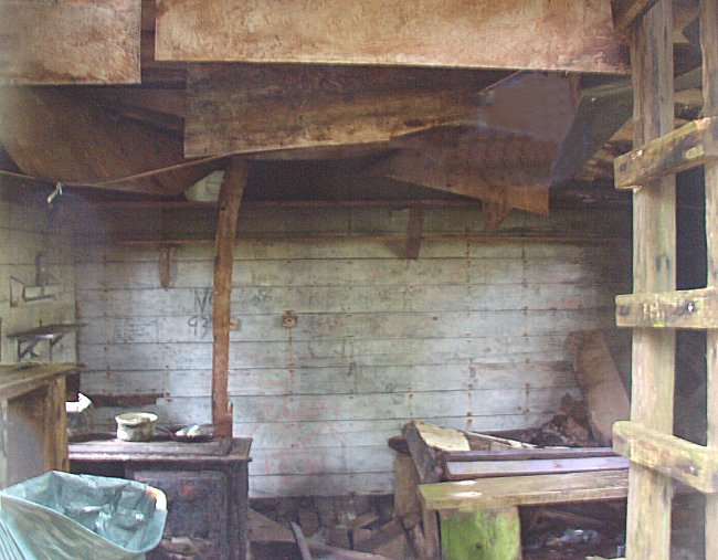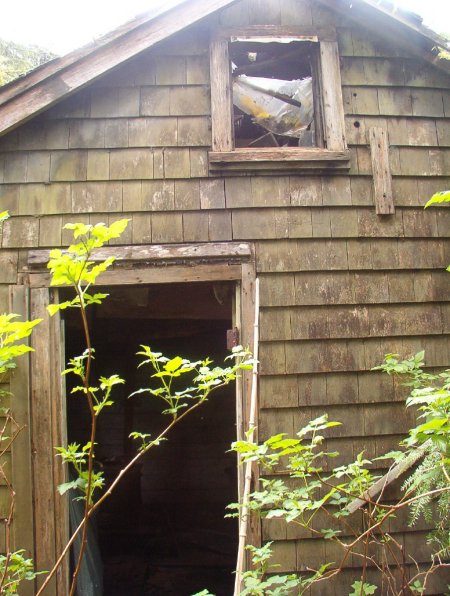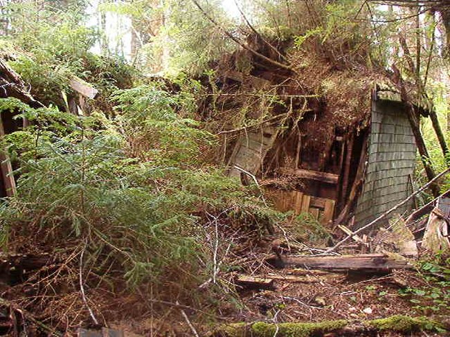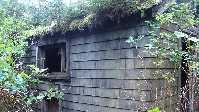 The photos of the domestic site taken by Harvey Humchitt are of two buildings. The more complete looking building is an old barracks and the one with the single wall is what was called "the store". These two shells are the only buildings which remain standing at this time. All of the other buildings which once existed have been flattened and grown over.