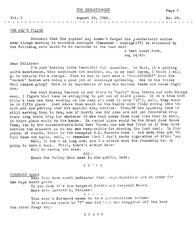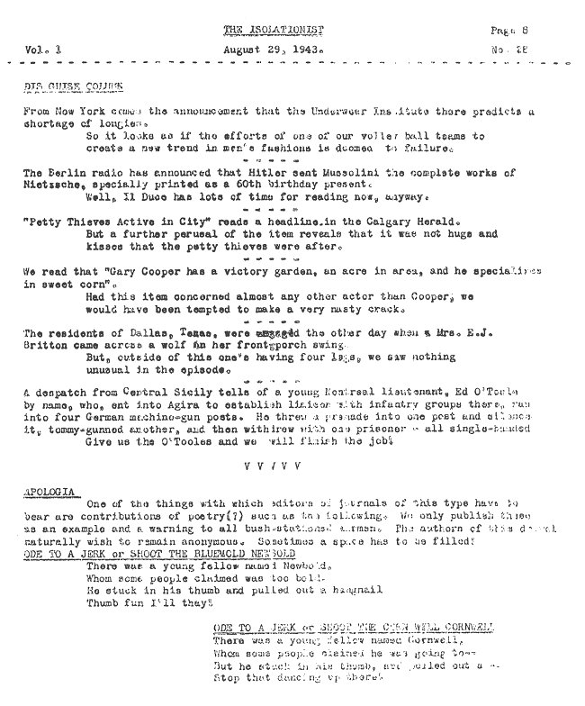 - The Isolationist. The Adjutant's Filler, page 3 - 29 August 1943.