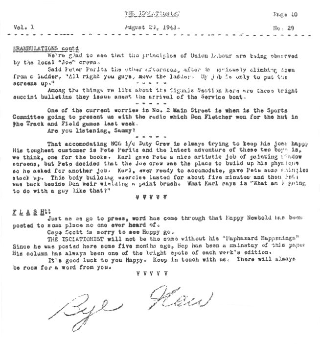 - The Isolationist. Haphazard Happenings, page 4 - 29 August 1943.