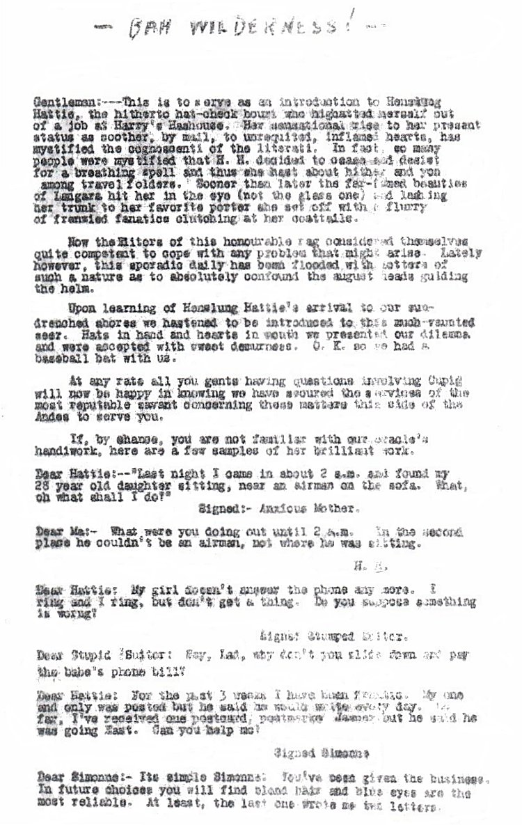 - Bah Wilderness, Vol I No. 2, page 2 - 7 August 1943.