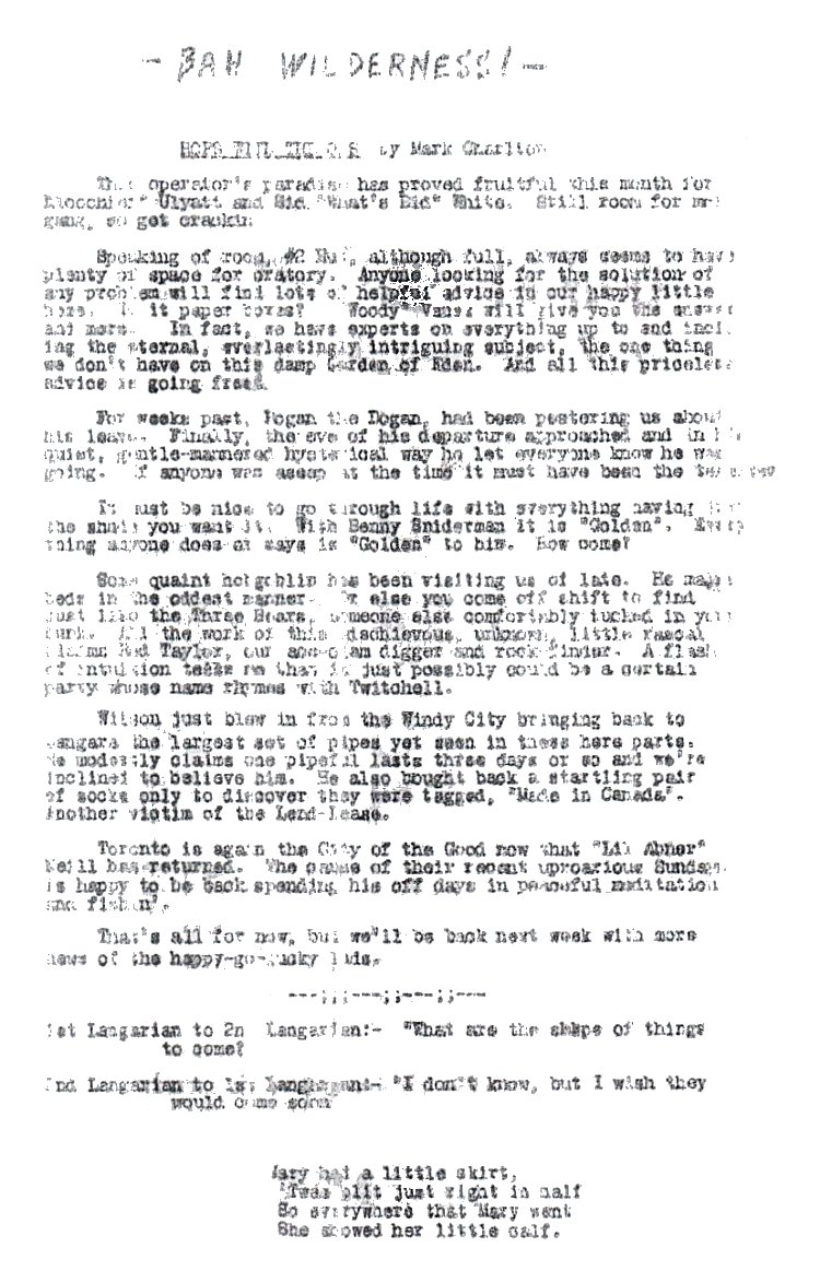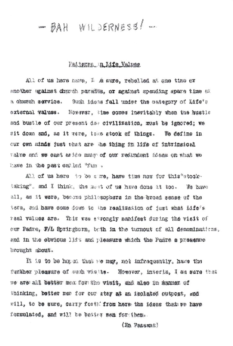 - Bah Wilderness, Vol I No. 2, page 3 - 7 August 1943.