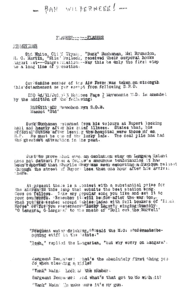 - Bah Wilderness, Vol I No. 2, page 7 - 7 August 1943.