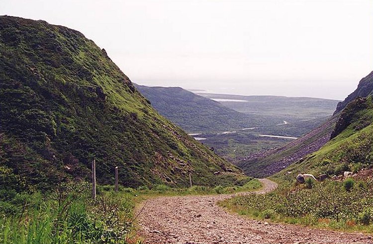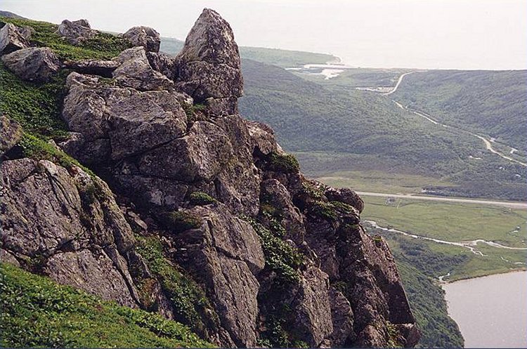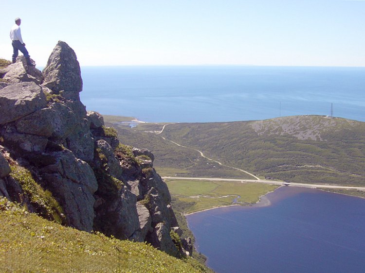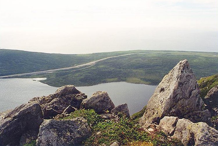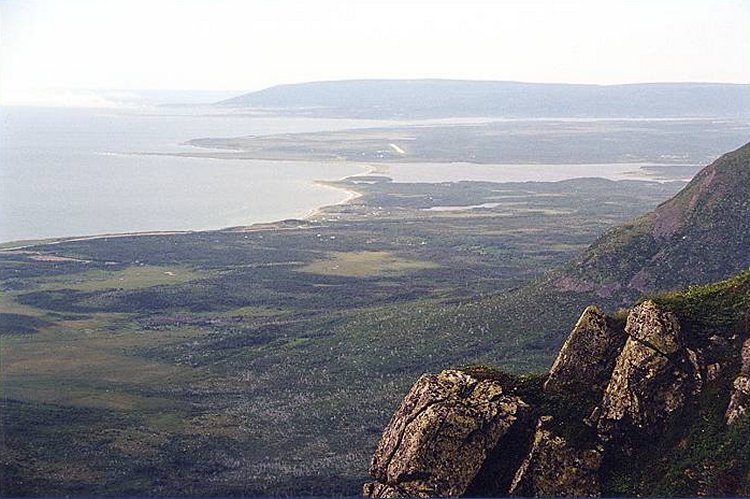 - This view from the tooth/claw rock offered an excellent vantage point on Big Pond, the Trans Canada Highway and the ocean beyond - July 2000.