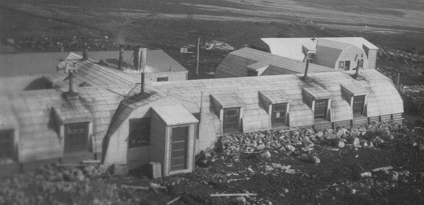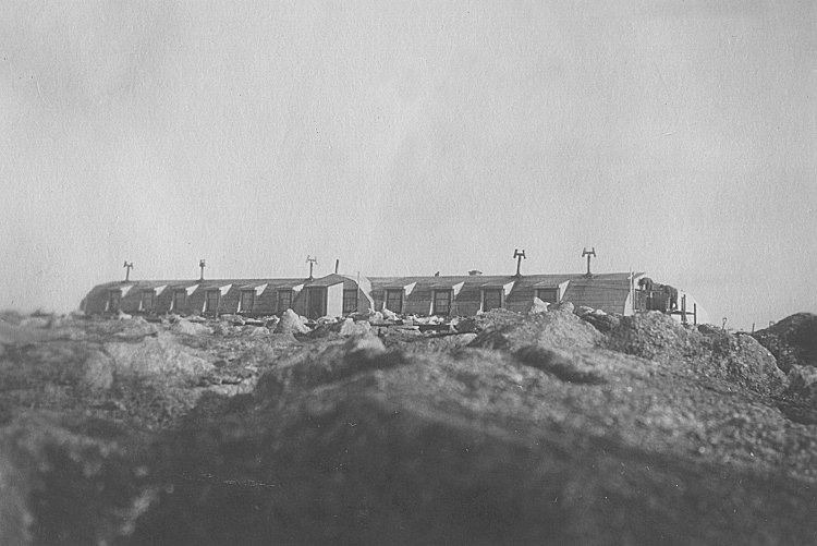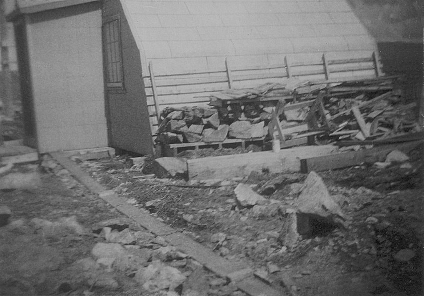 Note the rocks ballesting the building against the gale force winds - 1944.