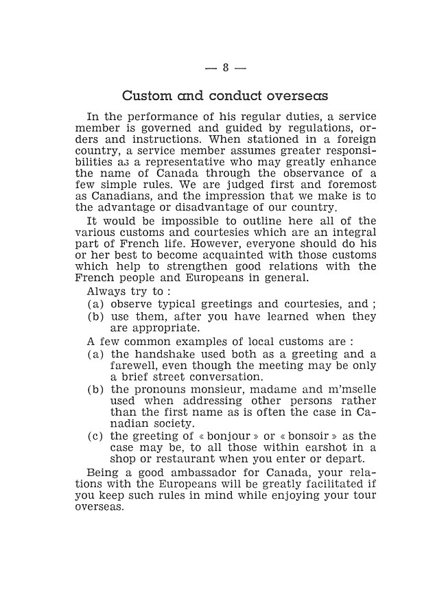 - Custom and Conduct Overseas, page 8 - June 1962