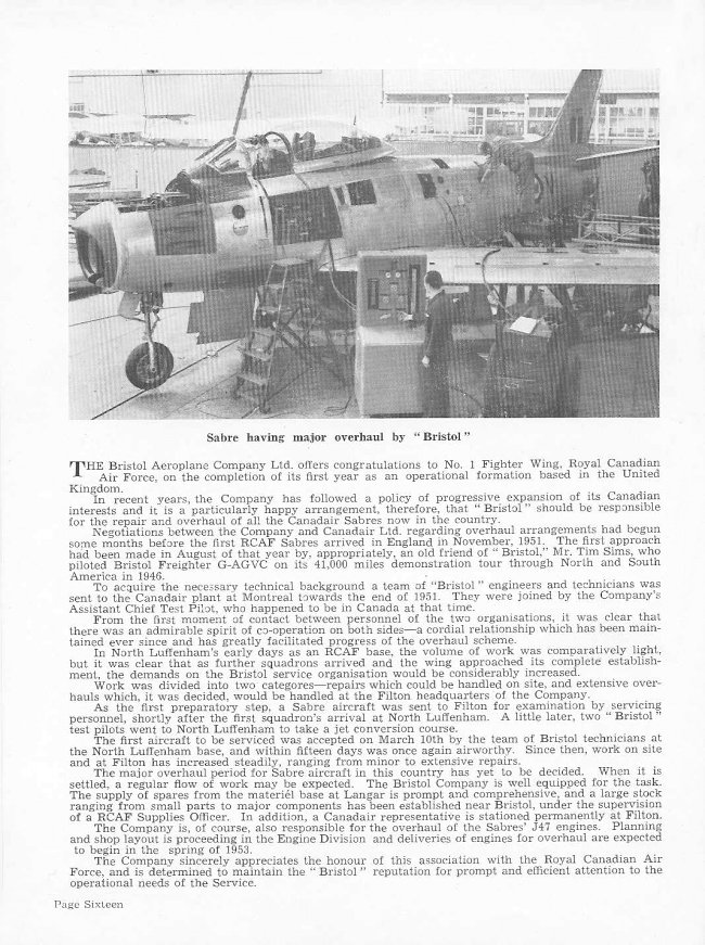 - Sabre having a major overhaul, page 16 - 1952