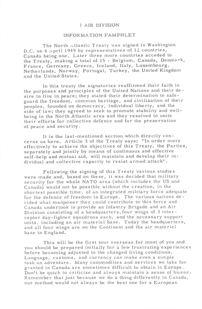 - 1 Air Division Information Pamphlet, front cover - 1955