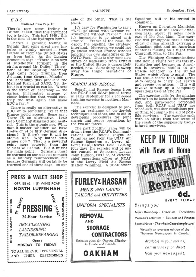 - RCAF Pipers in England, page 13 - September 1954