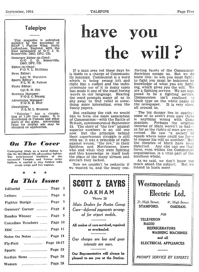 - In This Issue. Have you the Will?, page 5 - September 1954