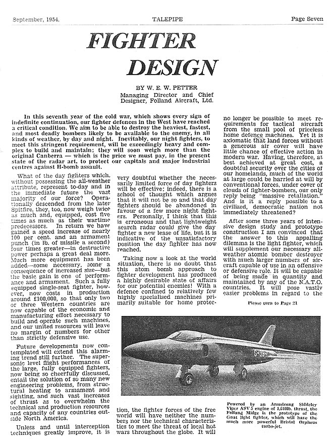 - Fighter Design, page 7 - September 1954