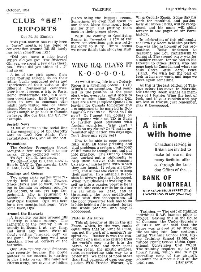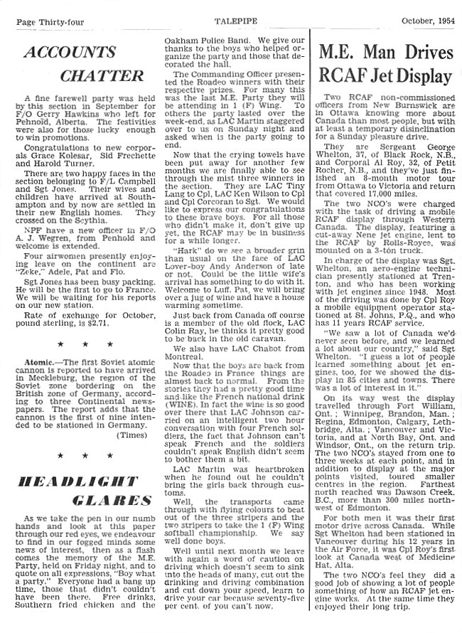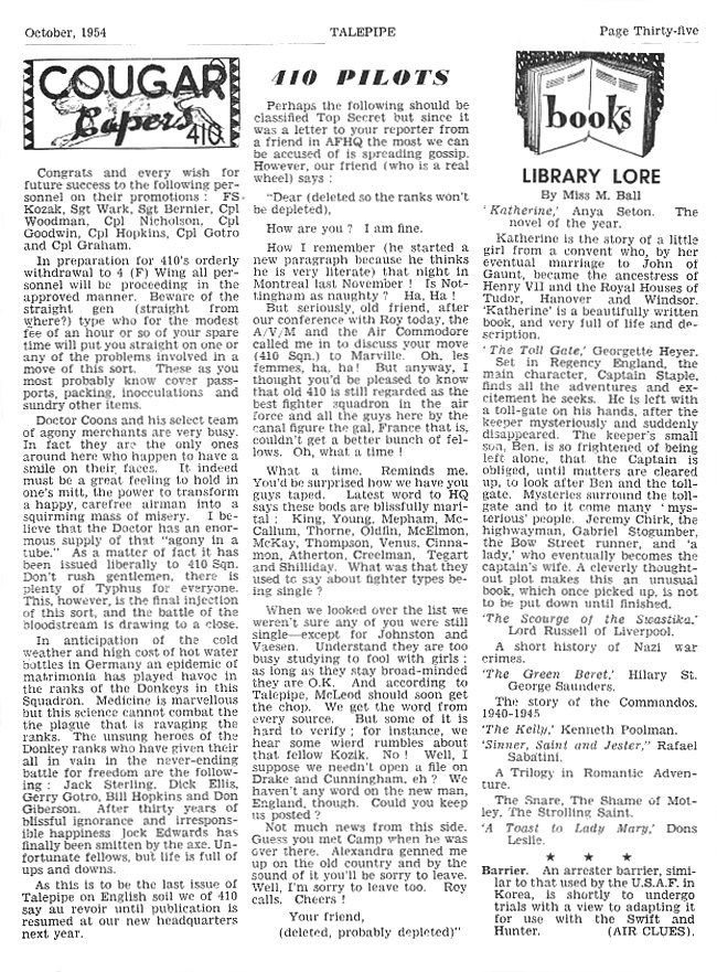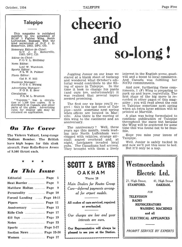 - In This Issue. Cheerio and So Long, page 5 - October 1954