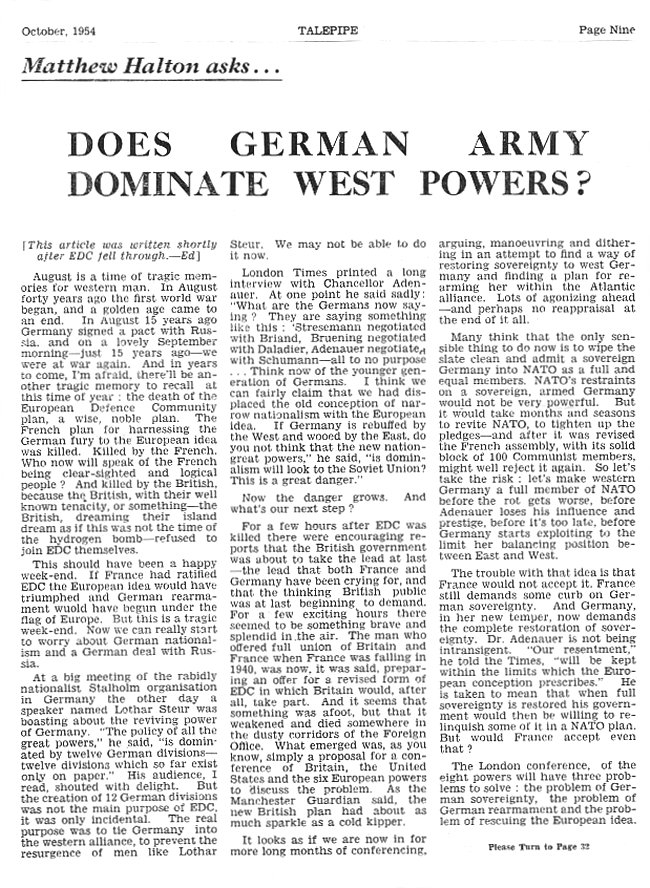 - Does German Army Dominate West Powers, page 9 - October 1954