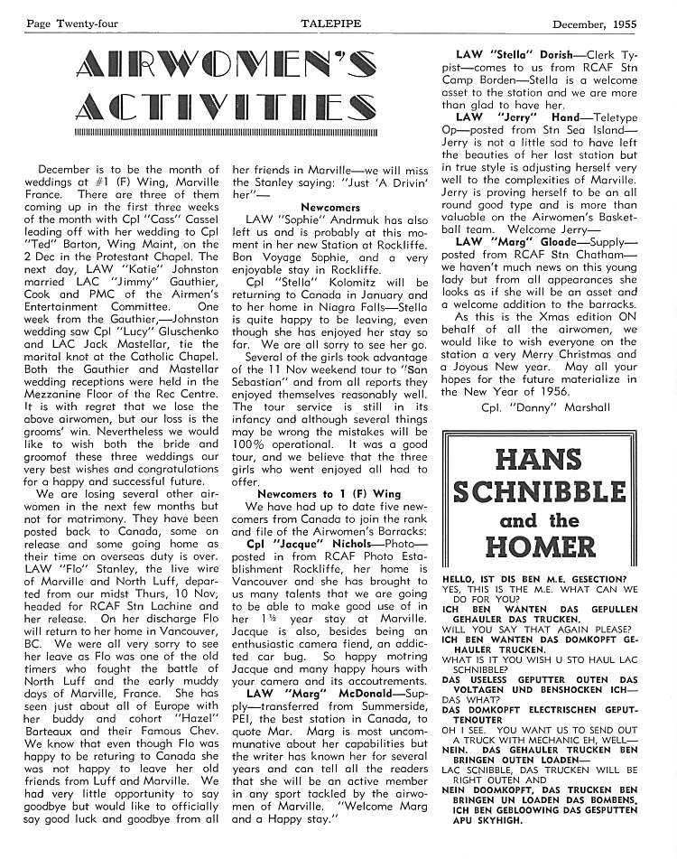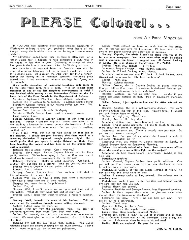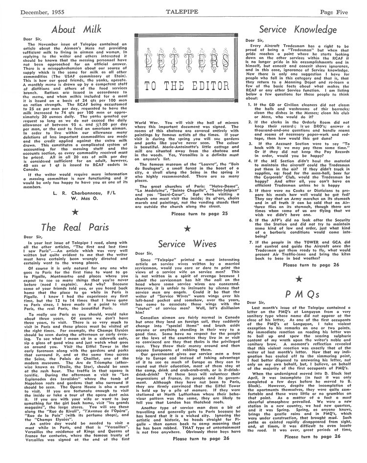 - Letters to the Editor (Cont'd), page 26 - December 1955