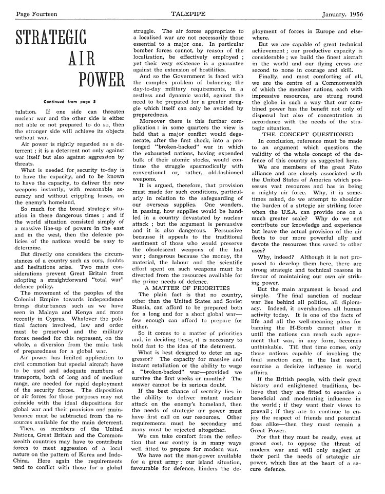 - Strategic Air Power (Cont'd), page 14 - January 1956
