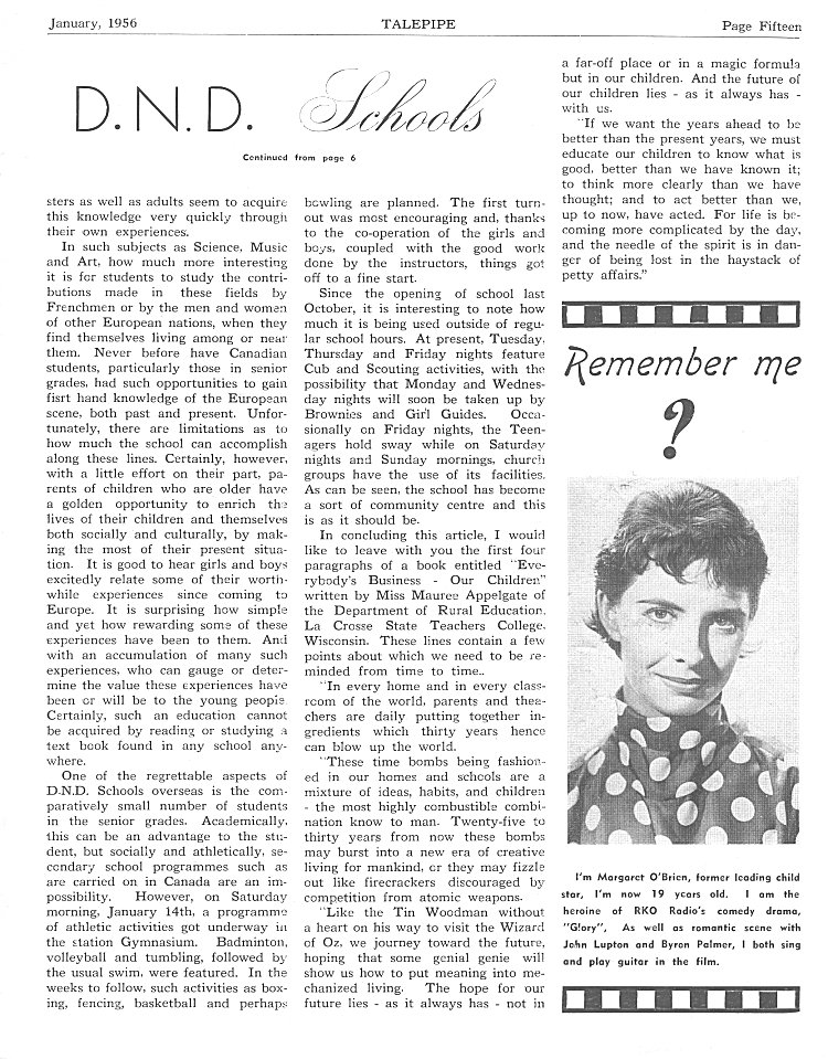 - DND Schools (Cont'd), page 15 - January 1956