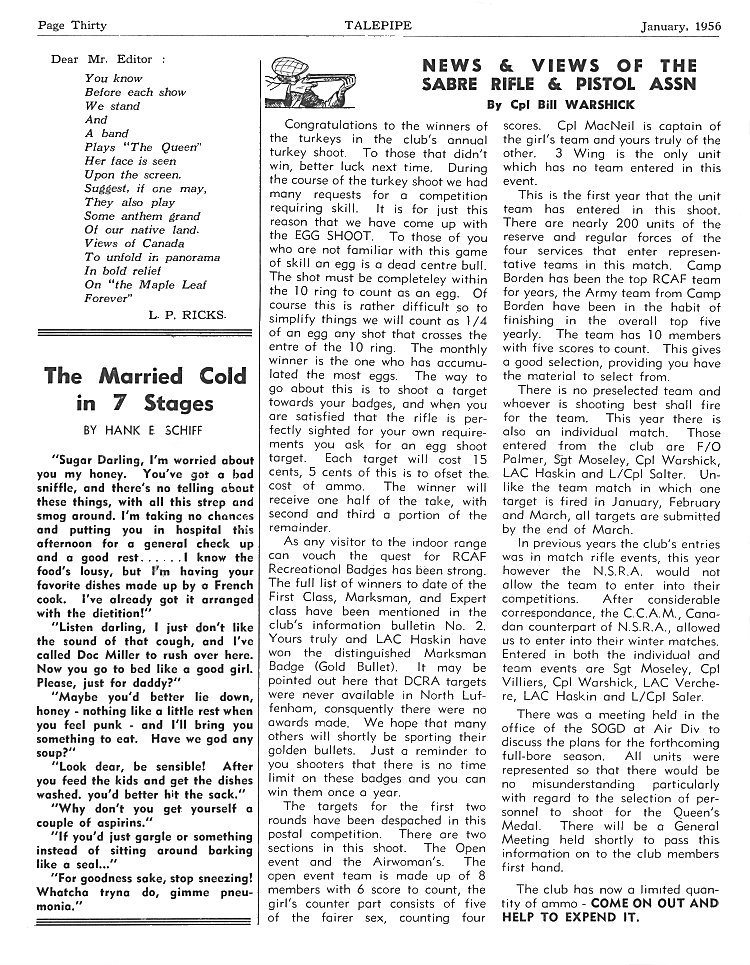 - News and Views of the Sabre Rifle & Pistol Association, page 30 - January 1956