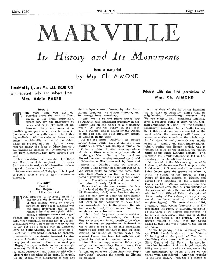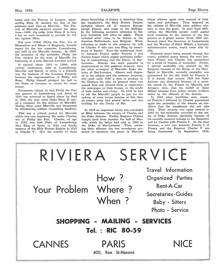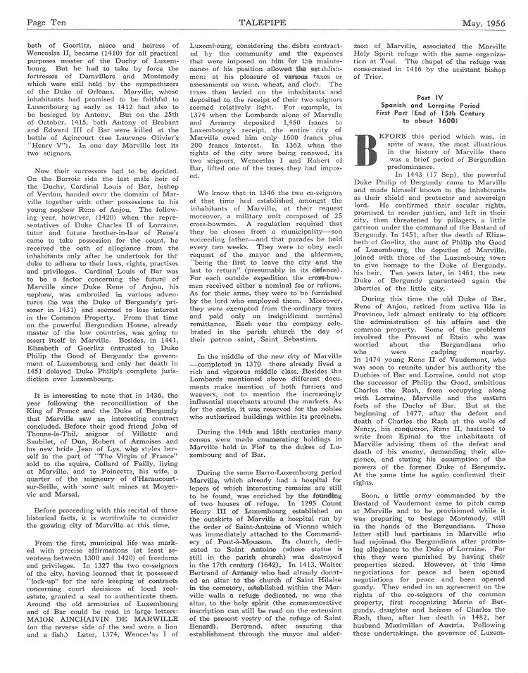 - A Letter fron the town of Florenville, page 3 - May 1956