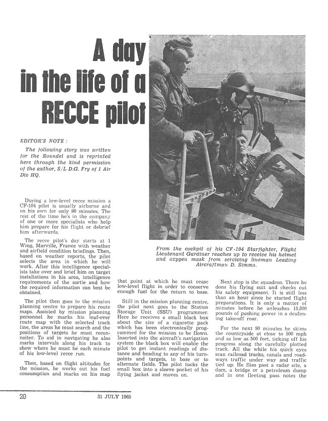 - A Day in the Life of a Recce Pilot, page 20 - 31 July 1965