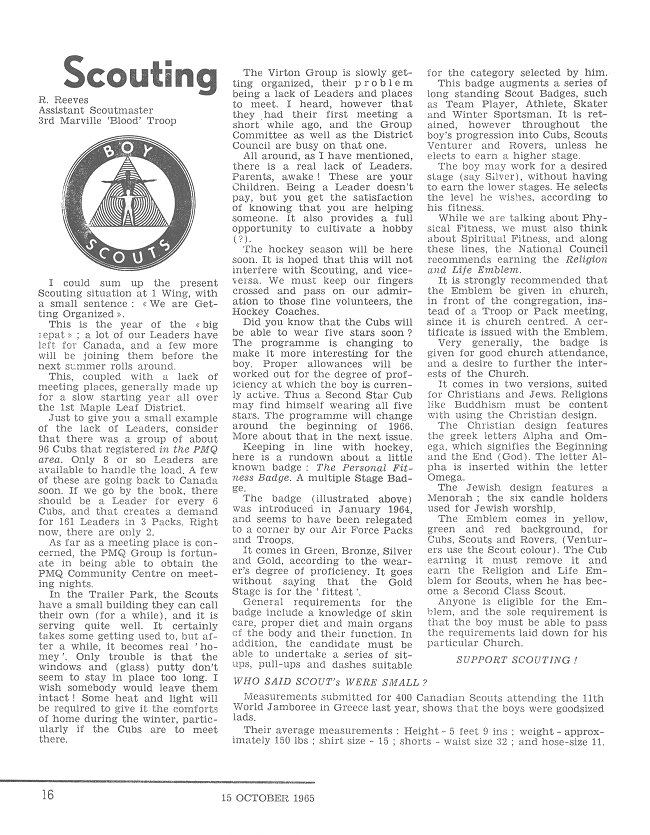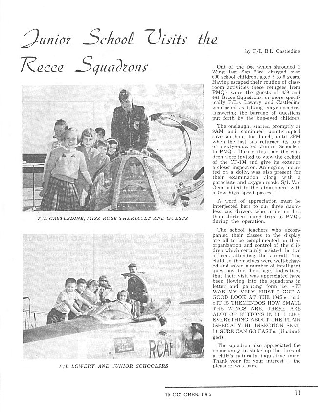 - Junior School Visits the Recce Squadrons, page 11 - 15 October 1965