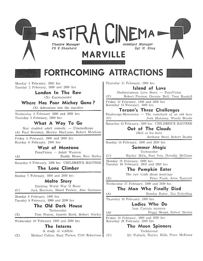 - Schedule for the Astra Cinema, inside back cover - 31 January 1965
