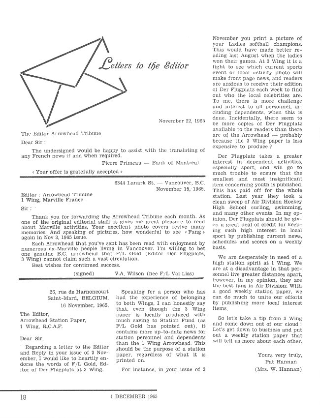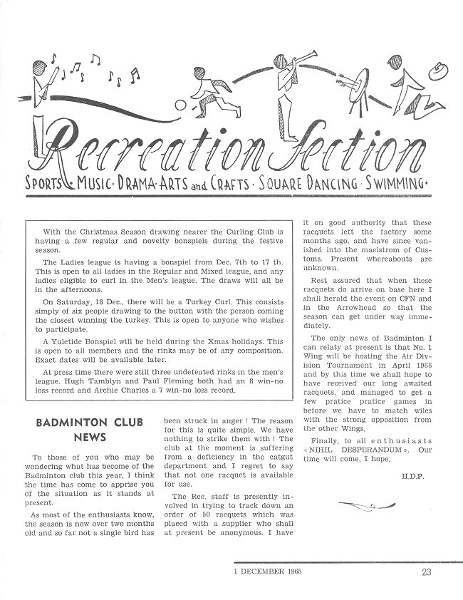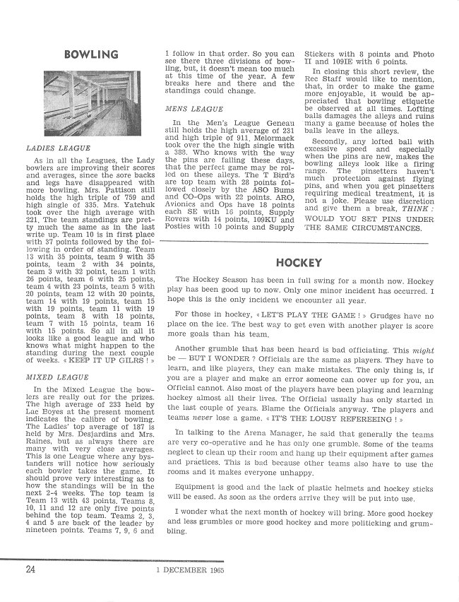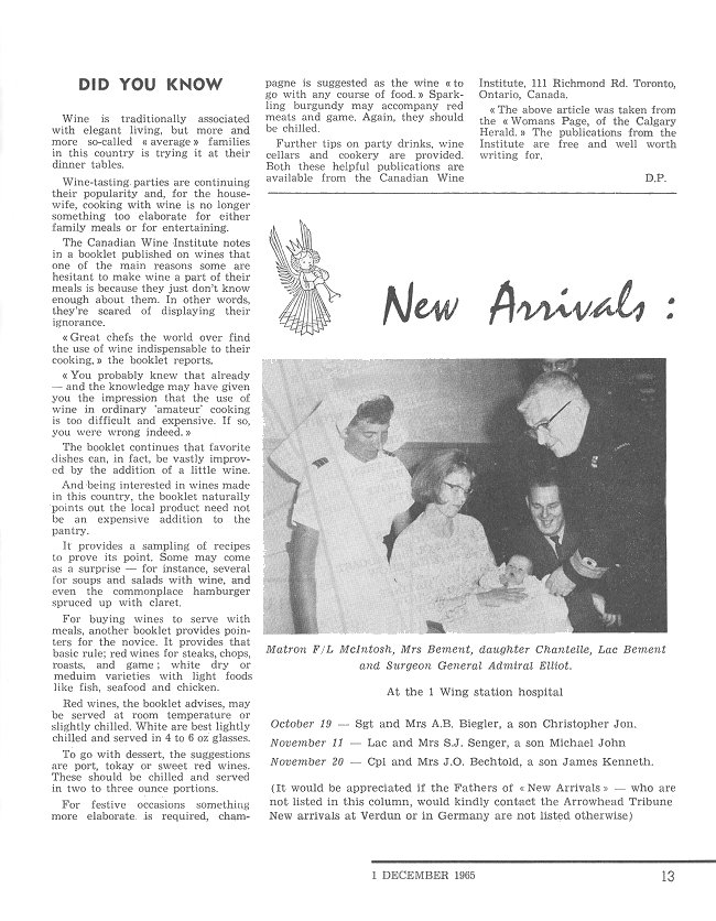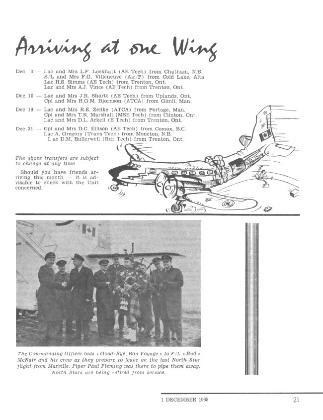 - Arrivals at One Wing, page 21 - 1 December 1965