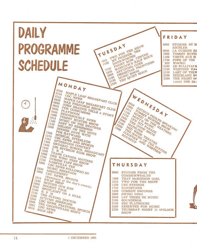 - CFN Daily Programme Schedule, page 14 - 1 December 1965