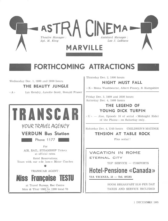 - Schedule for the Astra Cinema, inside back cover - 1 December 1965