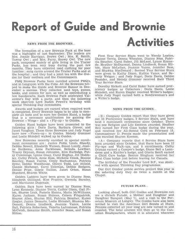 - Report of Guide and Brownie Activities, page 16 - 28 February 1965