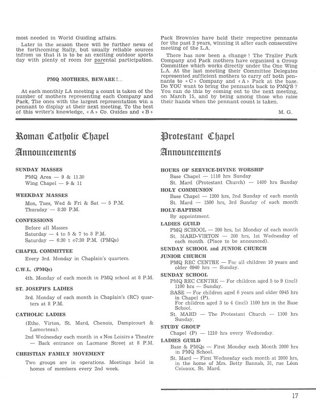 - Roman Catholic and Protestant Chapel Announcements, page 17 - 28 February 1965