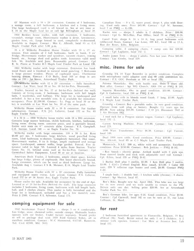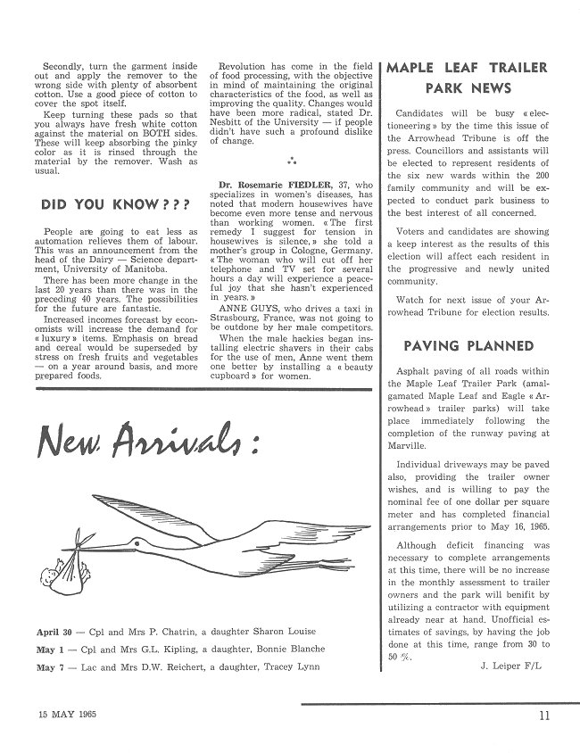 - Maple Leaf Trailer Park News, page 11 - 15 May 1965