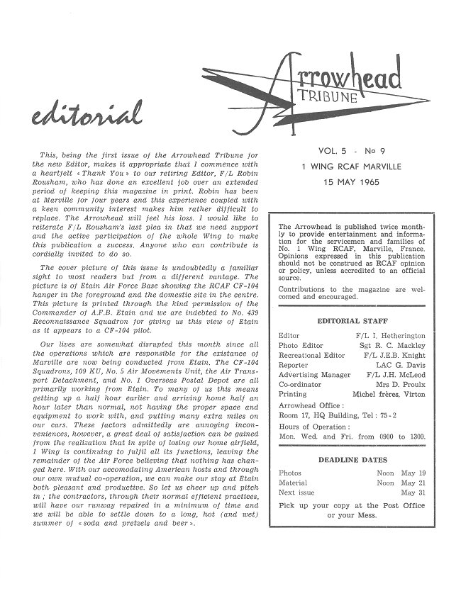 - Arriving at 1 Wing, page 6 - 15 May 1965