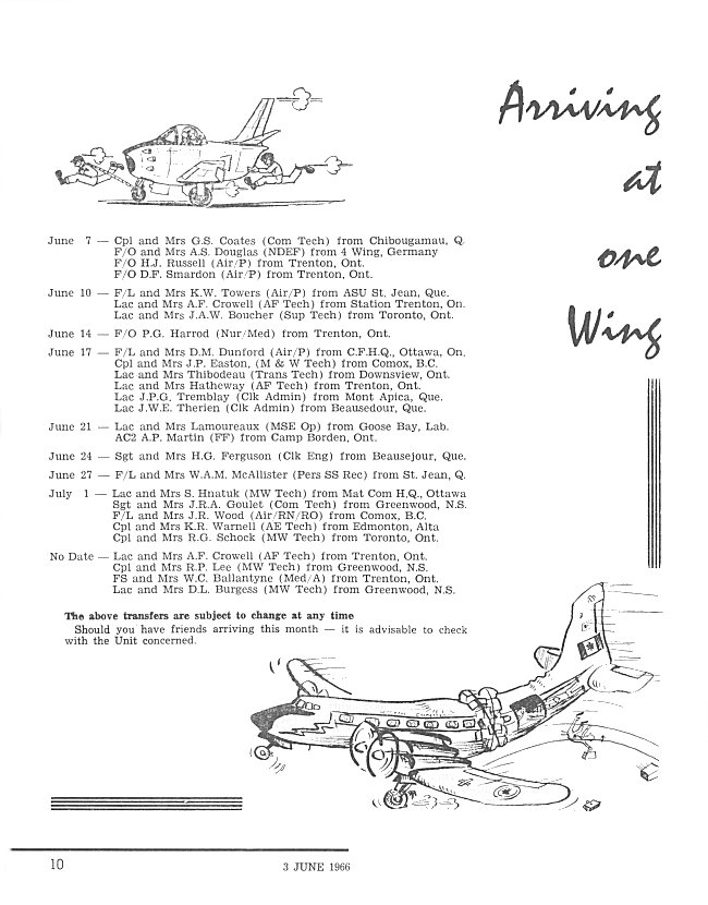 - Arriving at One Wing, page 10 - 3 June 1966