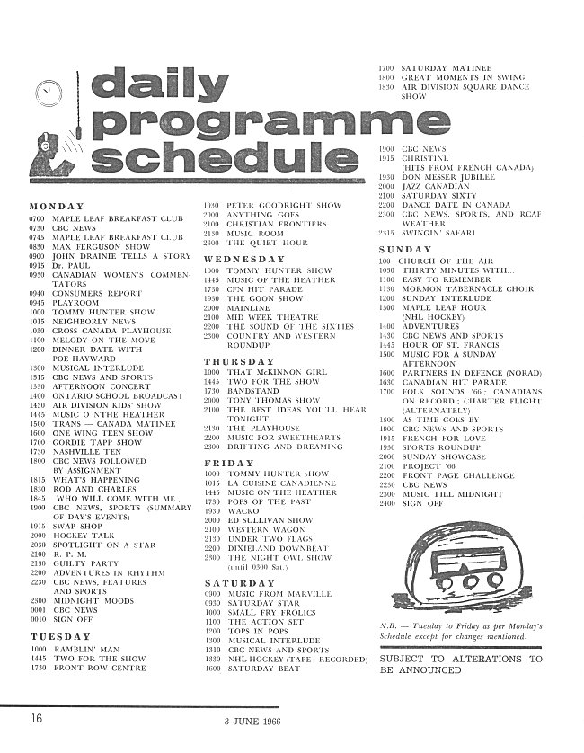 - CFN Daily Programme Schedule, page 16 - 3 June 1966