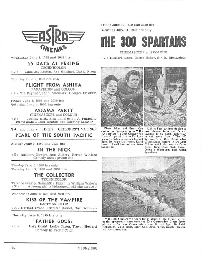 - Schedule for the Astra Cinema, page 28 - 3 June 1966