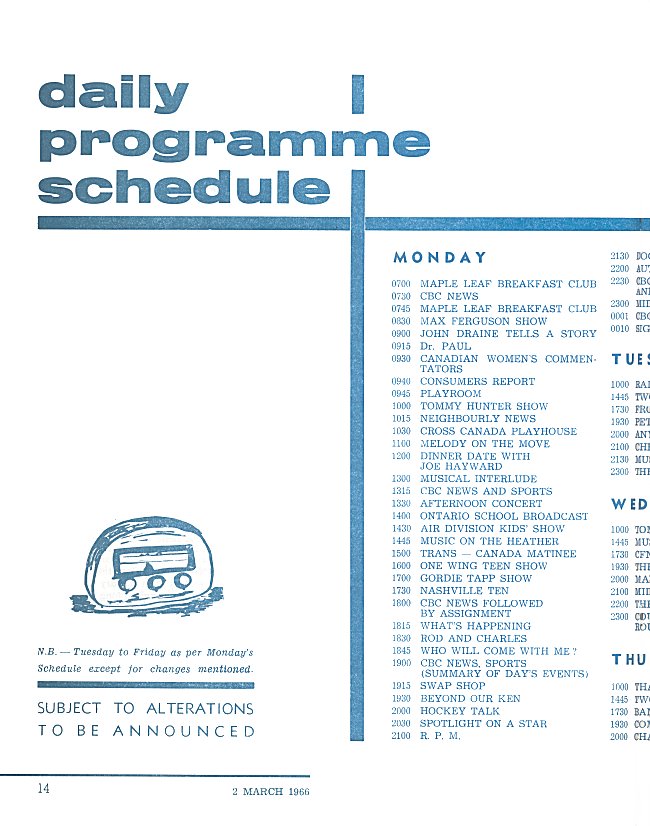 - CFN Daily Programme Schedule, page 14 - 2 March 1966